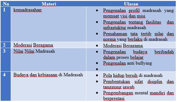 Tabel 1. Materi Matsama Berdasarkan Petunjuk Teknis Yang Berlaku Dari Pendidikan Islam